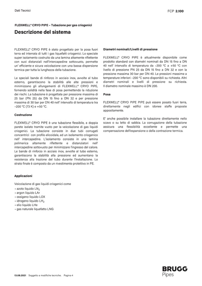 FLEXWELL® CRYO PIPE – Tubazione per gas criogenici