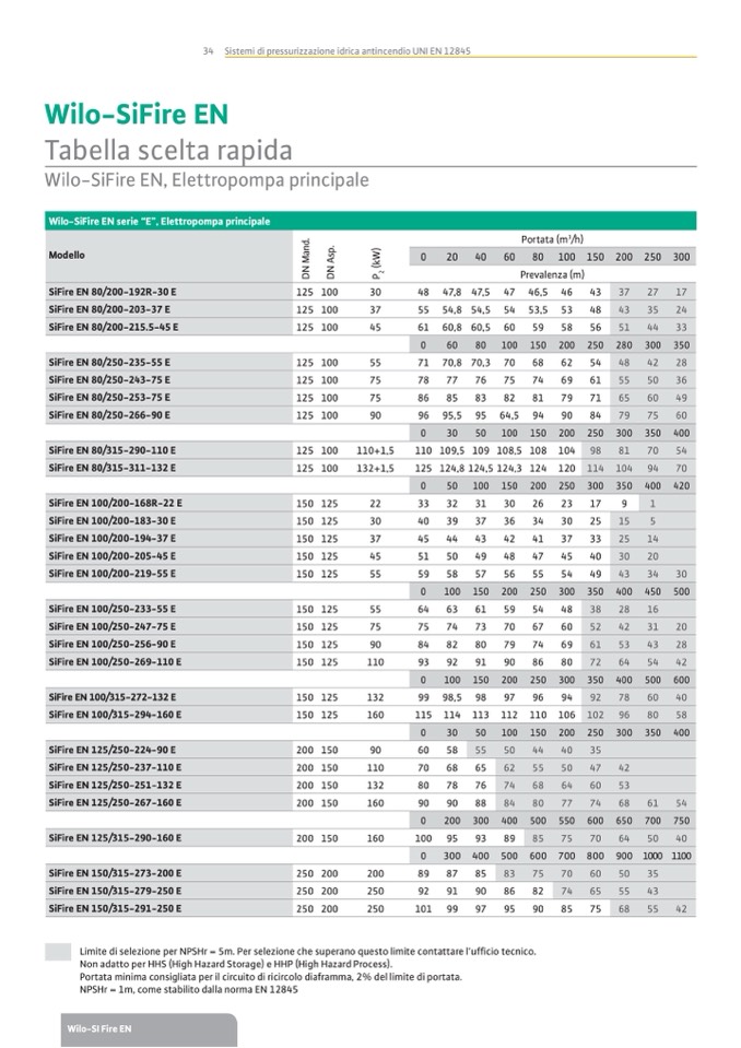 Limite di selezione per NPSHr = 5m. Per selezione che superano questo limite contattare l’ufcio tecnico.