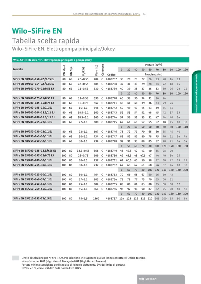 Limite di selezione per NPSHr = 5m. Per selezione che superano questo limite contattare l’uf�cio tecnico.