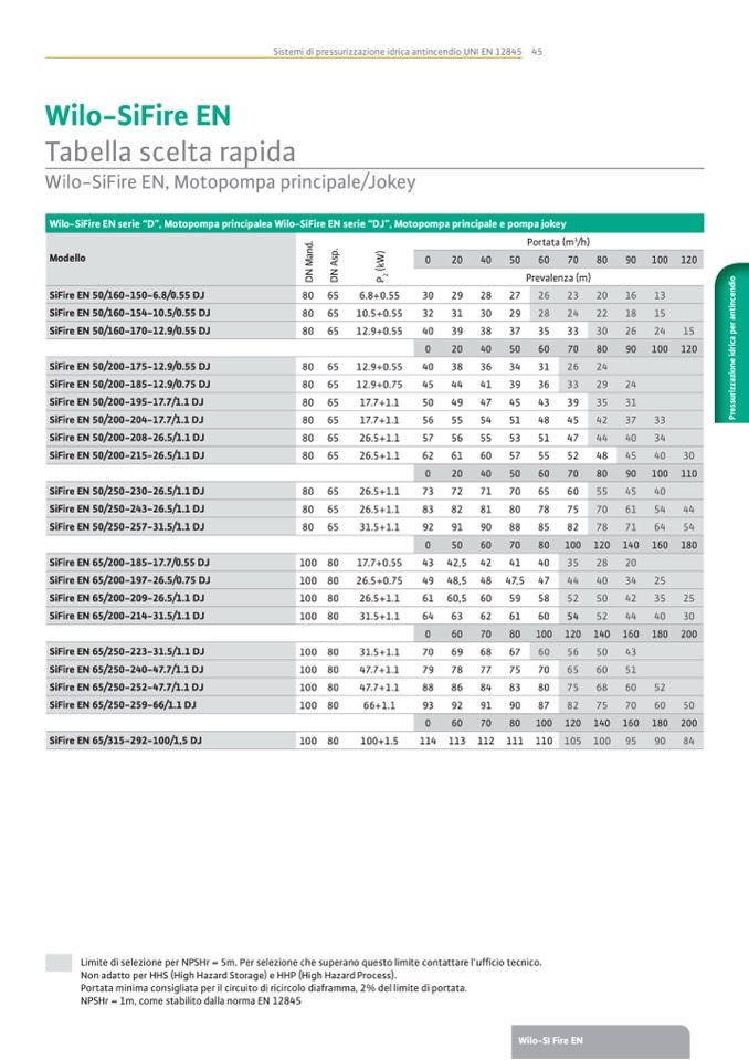 NPSHr = 1m, come stabilito dalla norma EN 12845