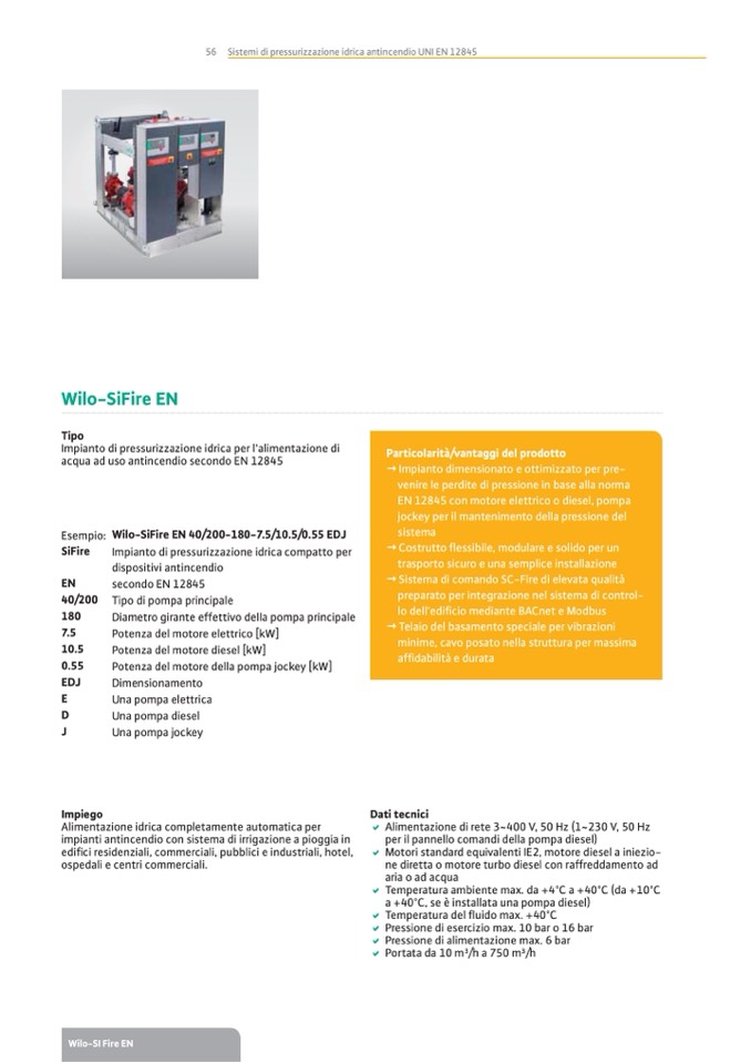56 Sistemi di pressurizzazione idrica antincendio UNI EN 12845