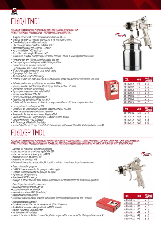 AEROGRAFO PROFESSIONALE PER VERNICIATURA PER POMPE SOTTO PRESSIONE | PROFESSIONAL PAINT SPRAY GUN WITH FITTING FOR PUMPS UNDER PRESSURE