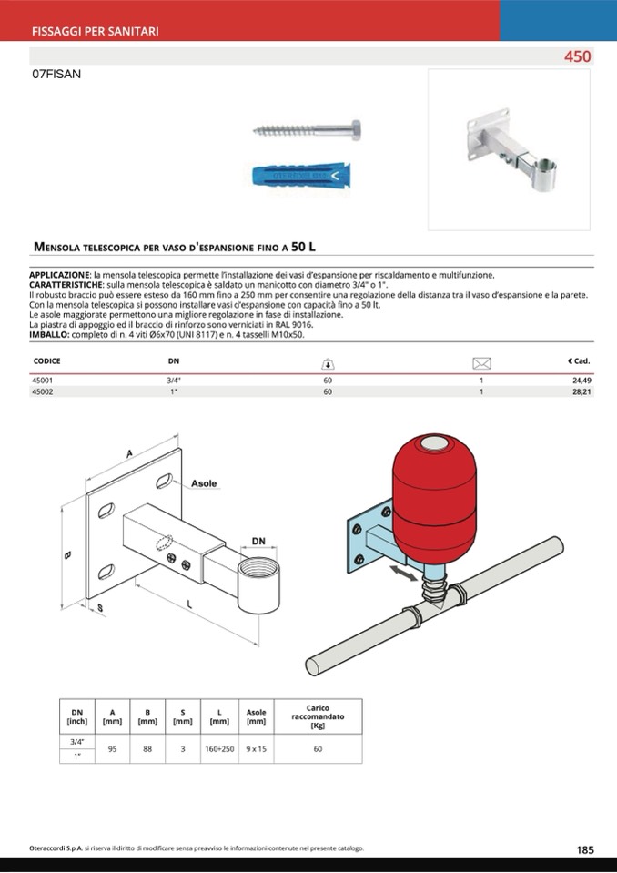 MENSOLA TELESCOPICA PER VASO D'ESPANSIONE FINO A 50 L