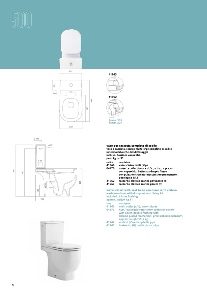 vaso a cacciata, scarico multi (s/p) completo di sedile