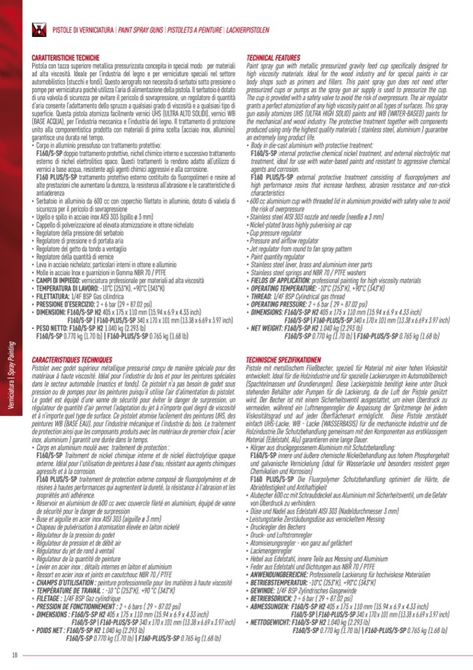 • PESO NETTO: F160/S-SP H2 1.040 kg (2.293 lb)