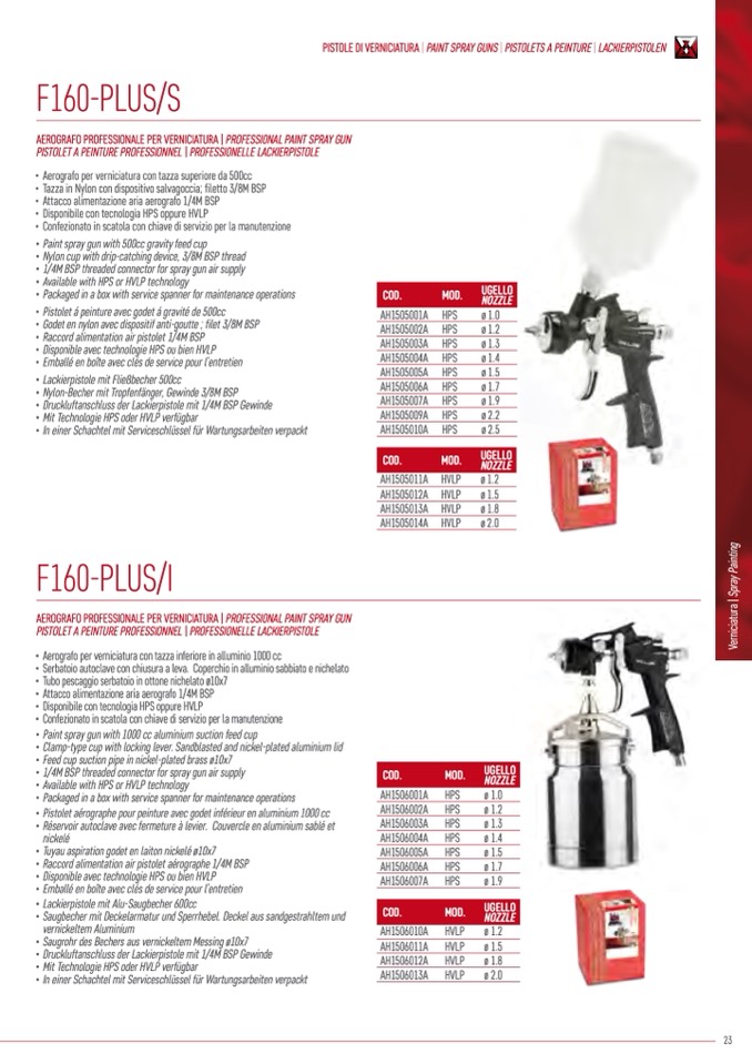 PISTOLE DI VERNICIATURA | PAINT SPRAY GUNS | PISTOLETS A PEINTURE | LACKIERPISTOLEN