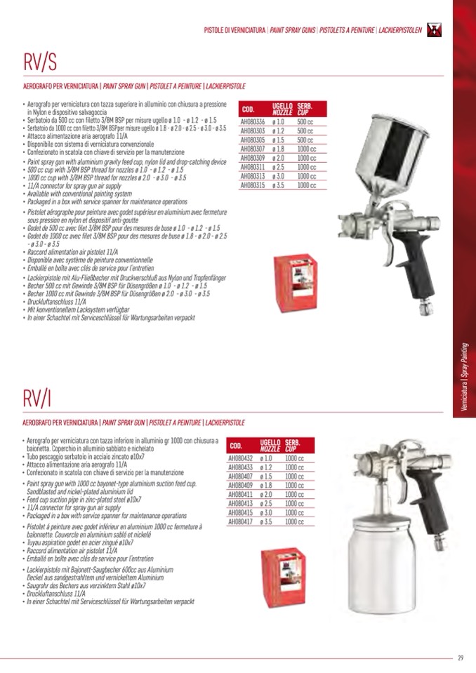 PISTOLE DI VERNICIATURA | PAINT SPRAY GUNS | PISTOLETS A PEINTURE | LACKIERPISTOLEN