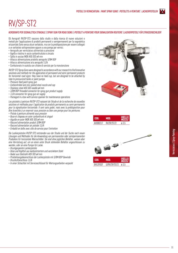 PISTOLE DI VERNICIATURA | PAINT SPRAY GUNS | PISTOLETS A PEINTURE | LACKIERPISTOLEN