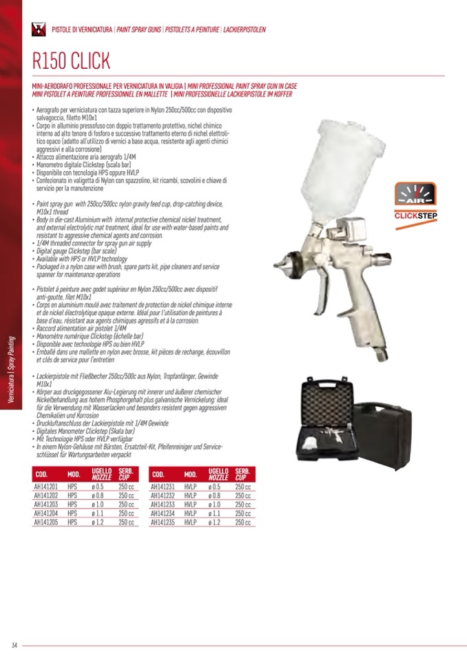 PISTOLE DI VERNICIATURA | PAINT SPRAY GUNS | PISTOLETS A PEINTURE | LACKIERPISTOLEN