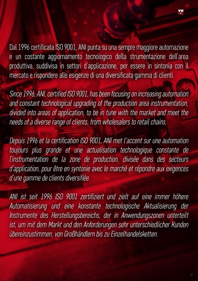 Since 1996, ANI, certified ISO 9001, has been focusing on increasing automation