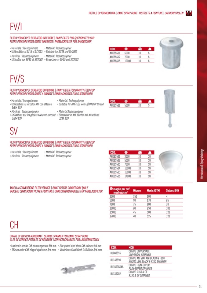 TABELLA CONVERSIONE FILTRI VERNICE | PAINT FILTERS CONVERSION TABLE
