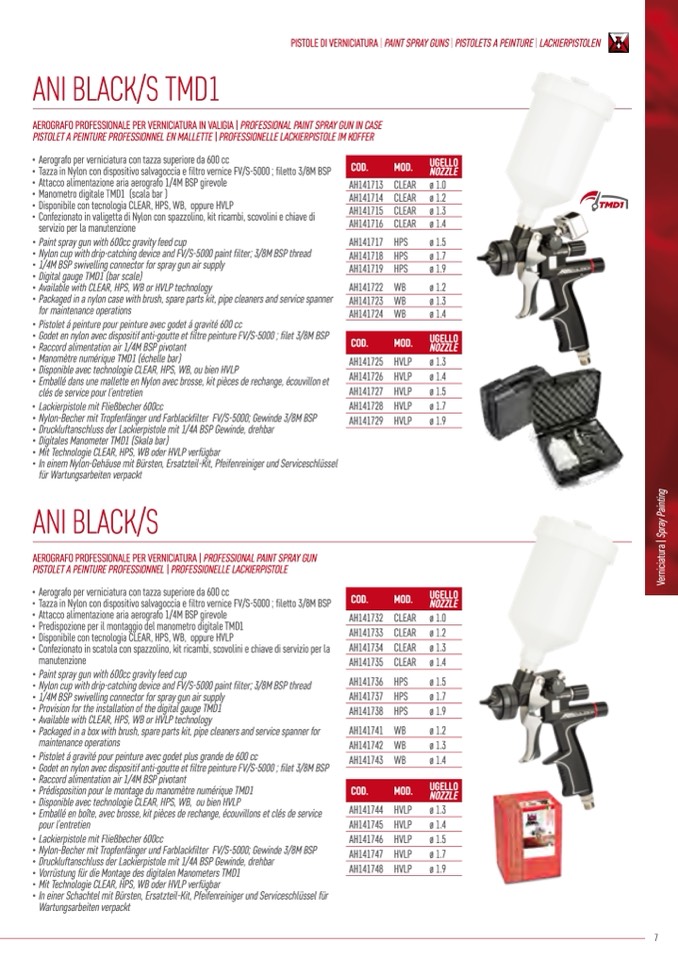 PISTOLE DI VERNICIATURA | PAINT SPRAY GUNS | PISTOLETS A PEINTURE | LACKIERPISTOLEN