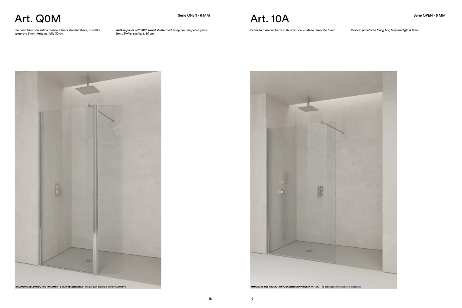 Pannello fisso con barra stabilizzatrice, cristallo temprato 6 mm.