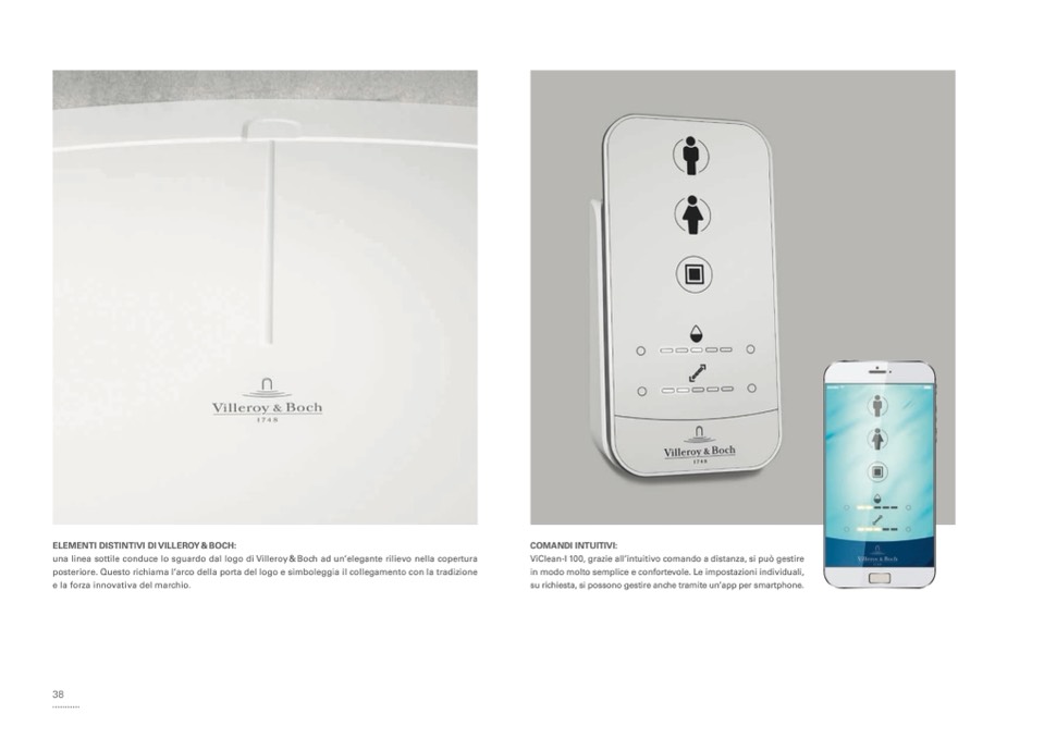 una linea sottile conduce lo sguardo dal logo di Villeroy & Boch ad un’elegante rilievo nella copertura