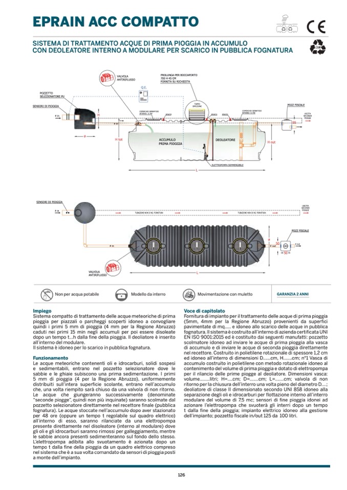 contenimento del volume di prima pioggia e dotato di elettropompa