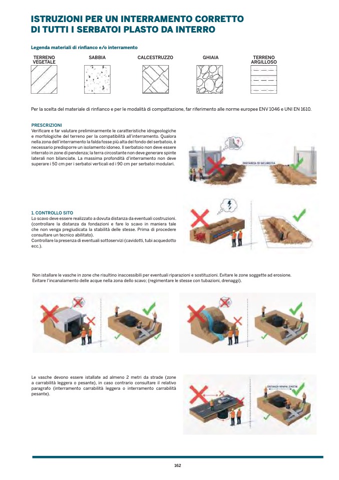 Non istallare le vasche in zone che risultino inaccessibili per eventuali riparazioni e sostituzioni. Evitare le zone soggette ad erosione