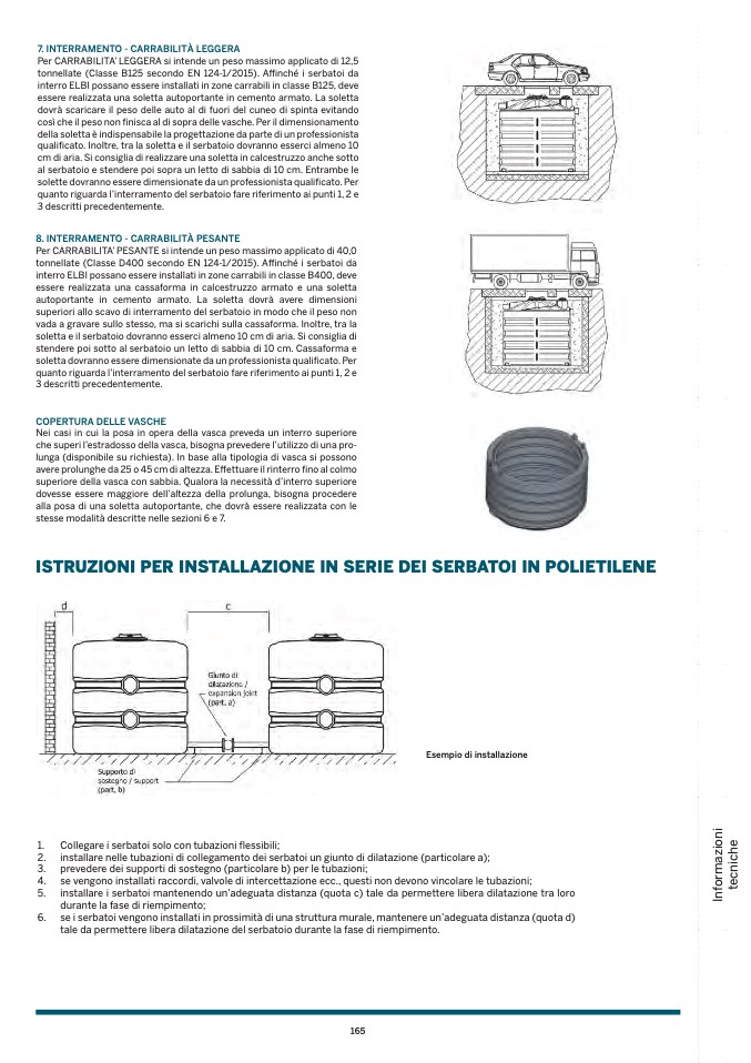 tonnellate (Classe B125 secondo EN 124-1/2015). Affi nché i serbatoi da