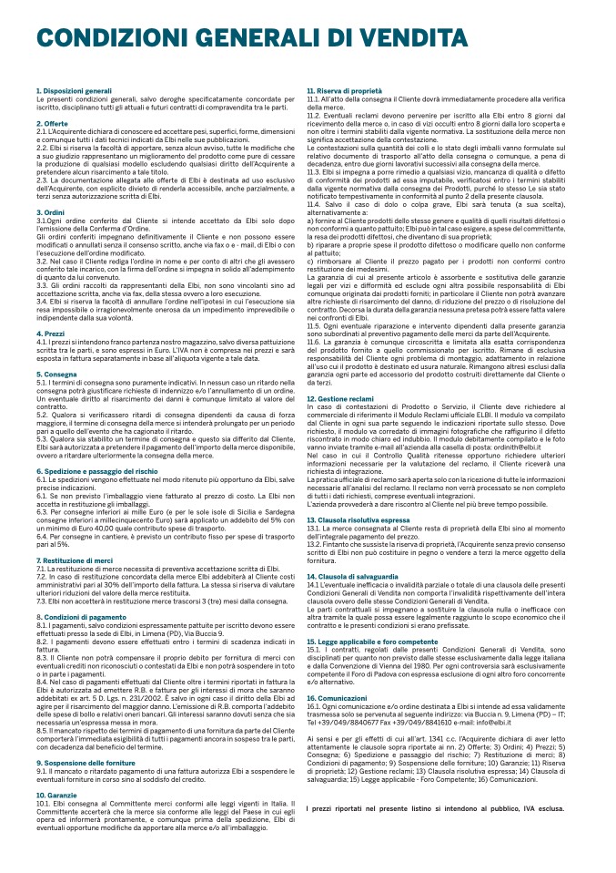3.1.Ogni ordine conferito dal Cliente si intende accettato da Elbi solo dopo