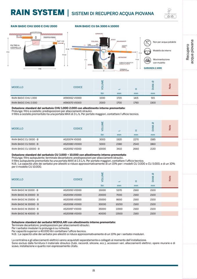 Per capacità superiori a 40.000 litri contattare l’u