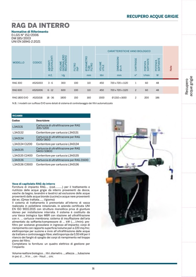 Fornitura di impianto RAG…. (cod……….) per il trattamento