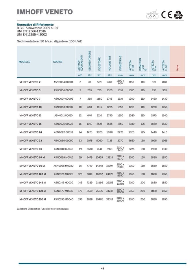 Sedimentatore: 50 l/a.e.; digestore: 150 l/A
