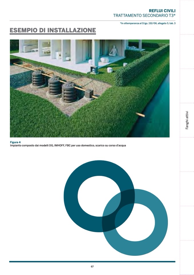 Impianto composto dai modelli DG, IMHOFF, FBC per uso domestico, scarico su corso d’acqu