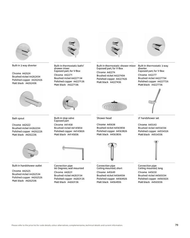 Please refer to the price list for code details, colour alternatives, complementaries, technical details and current information.