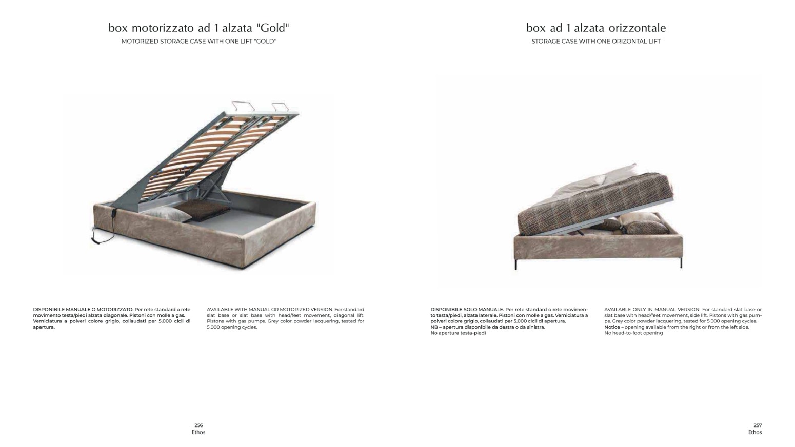 to testa/piedi, alzata laterale. Pistoni con molle a gas. Verniciatura a