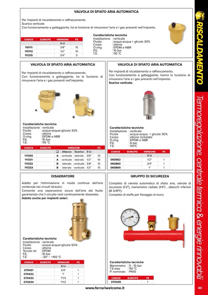 VALVOLA DI SFIATO ARIA AUTOMATICA