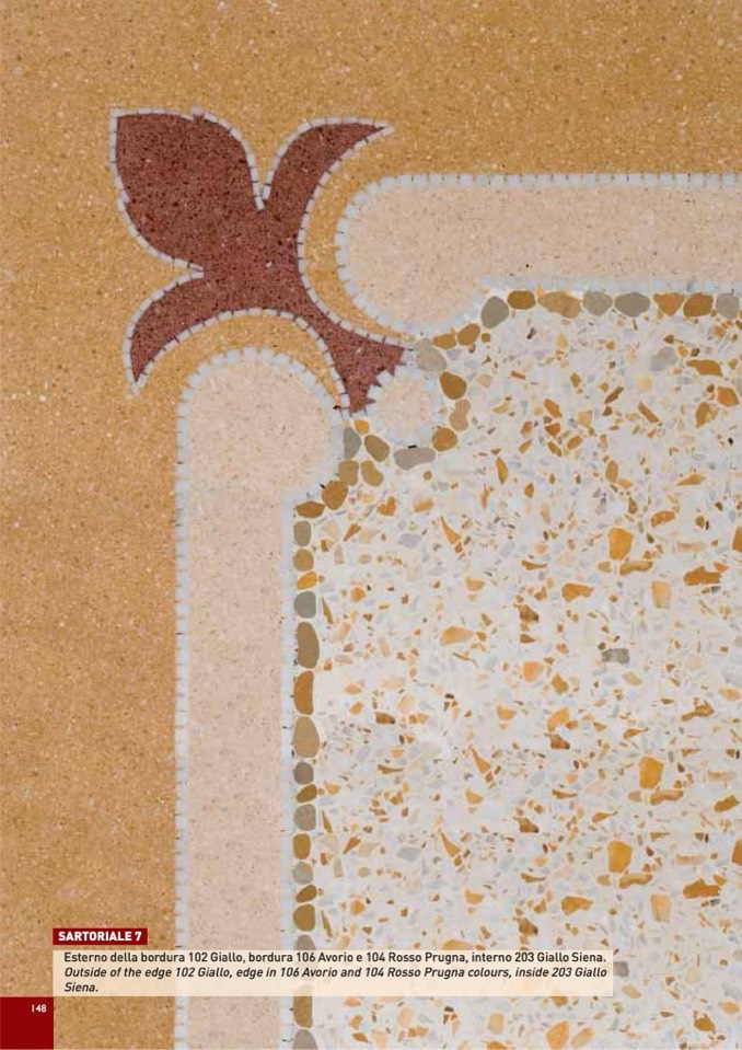 Esterno della bordura 102 Giallo, bordura 106 Avorio e 104 Rosso Prugna, interno 203 Giallo Siena.