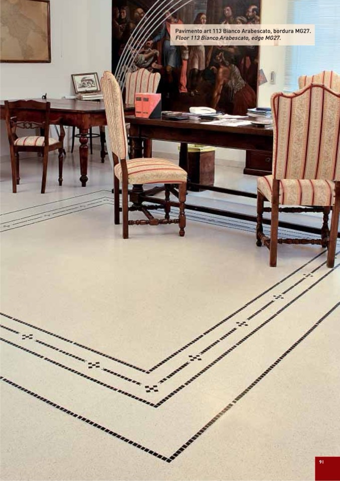 Pavimento art 113 Bianco Arabescato, bordura MG27.