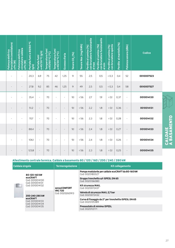 Allestimento centrale termica. Caldaie a basamento 80 / 120 / 160 / 200 / 240 / 280 kW