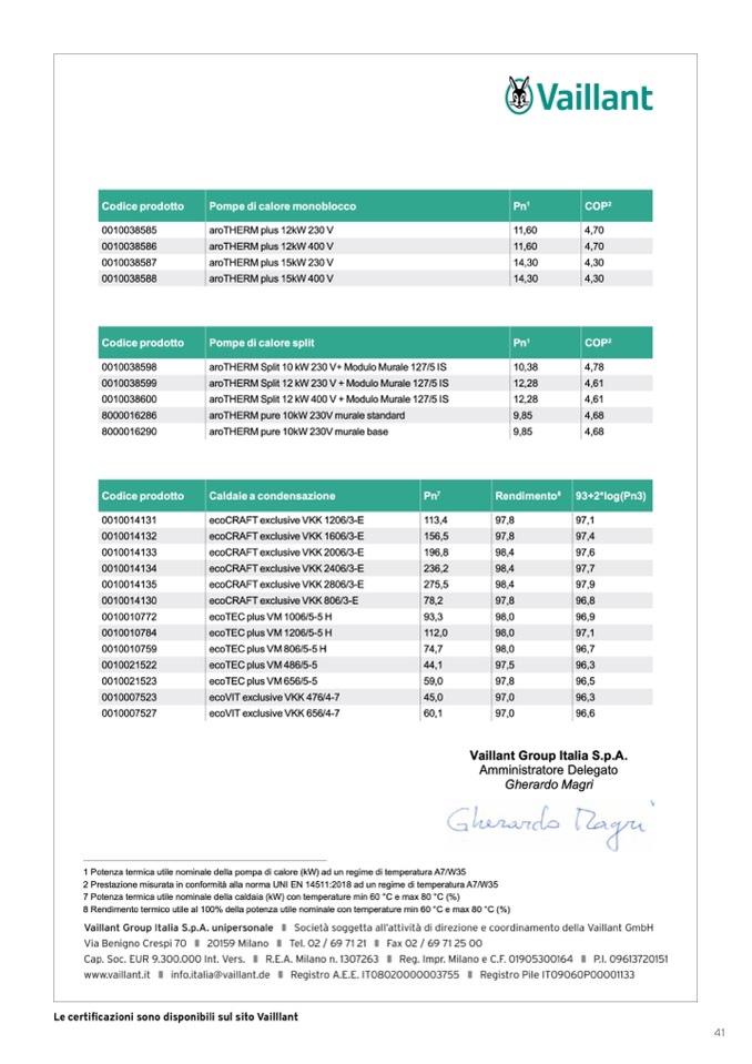 Le certificazioni sono disponibili sul sito Vailllant