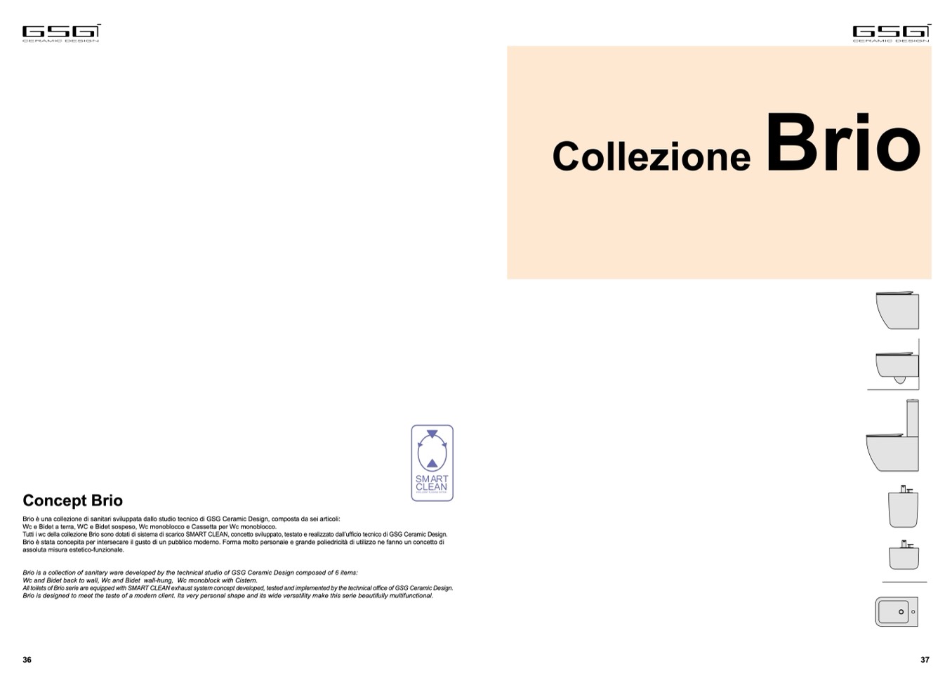 Brio is a collection of sanitary ware developed by the technical studio of GSG Ceramic Design composed of 6 items:
