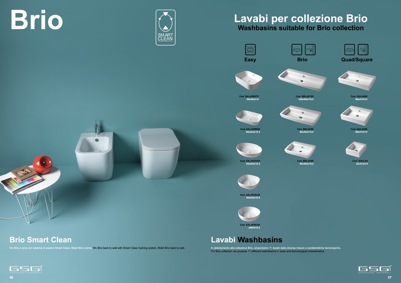 In abbinamento alla collezione Brio, proponiamo 11 lavabi dalle diverse misure e caratteristiche tecnologiche.