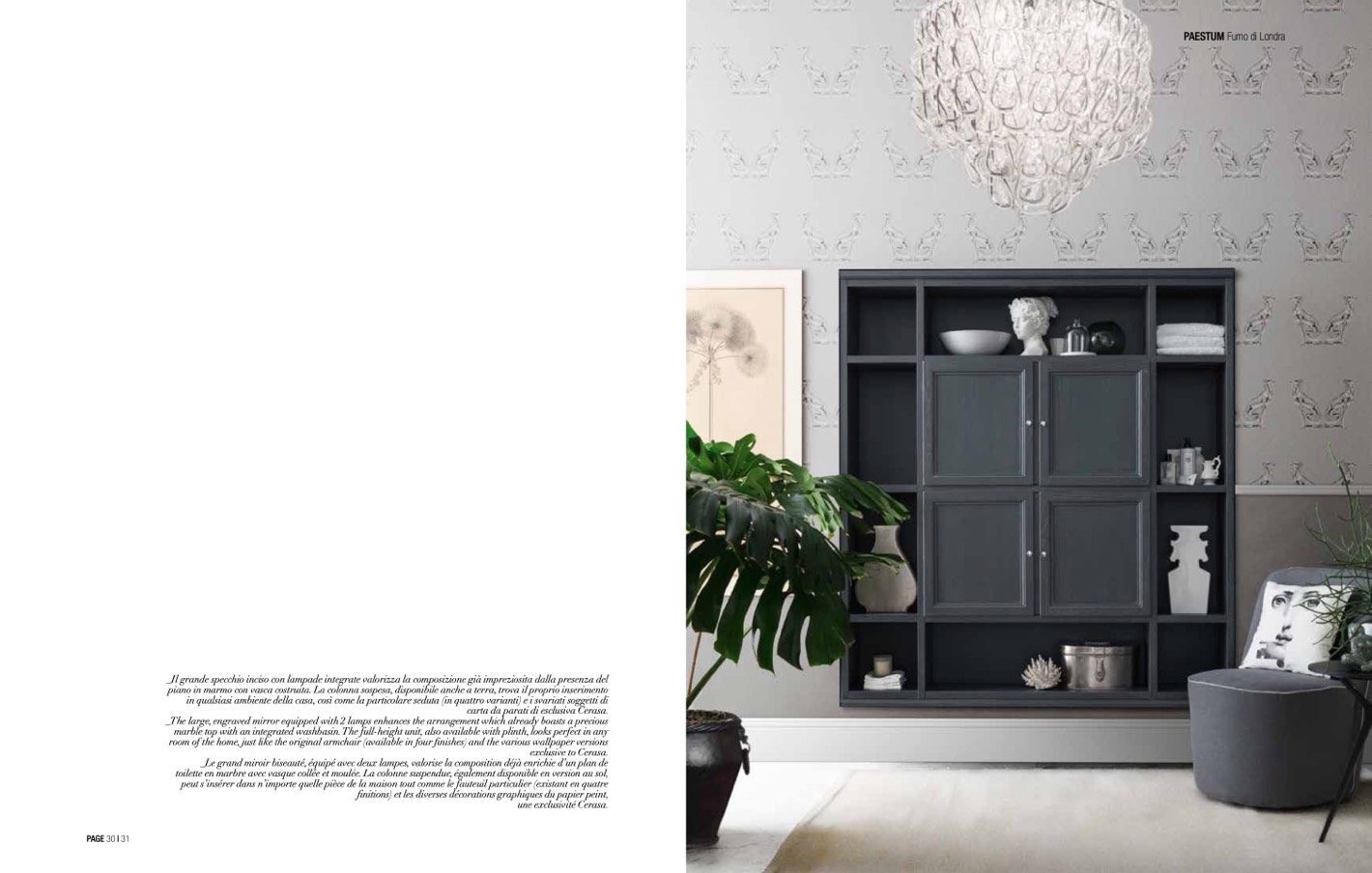 _Il grande specchio inciso con lampade integrate valorizza la composizione già impreziosita dalla presenza del