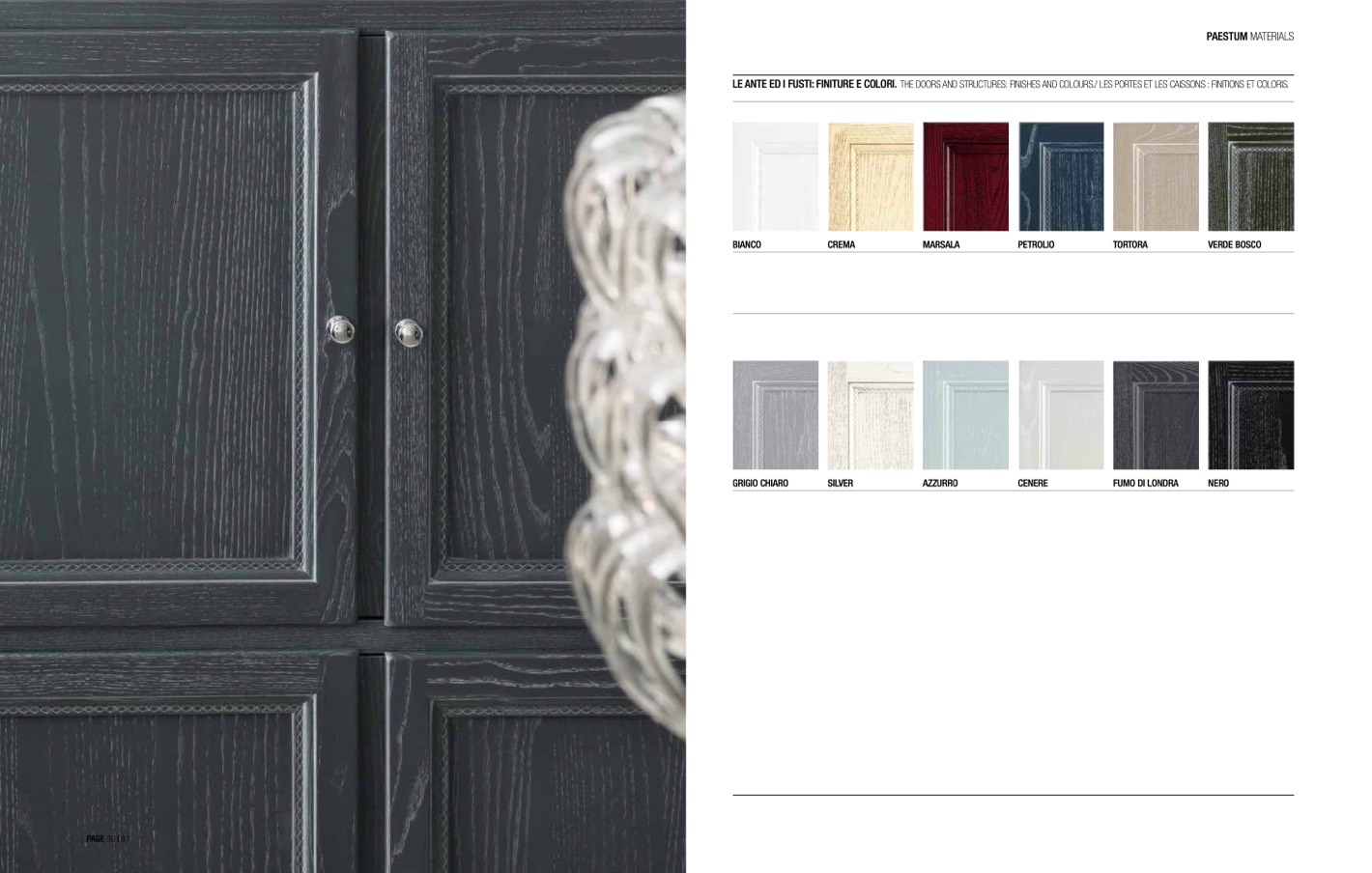 LE ANTE ED I FUSTI: FINITURE E COLORI. THE DOORS AND STRUCTURES: FINISHES AND COLOURS./ LES PORTES ET LES CAISSONS : FINITIONS ET COLORIS.