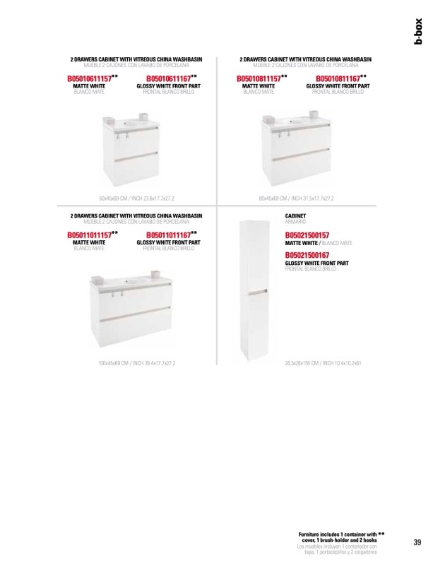 furniture includes 1 container with **