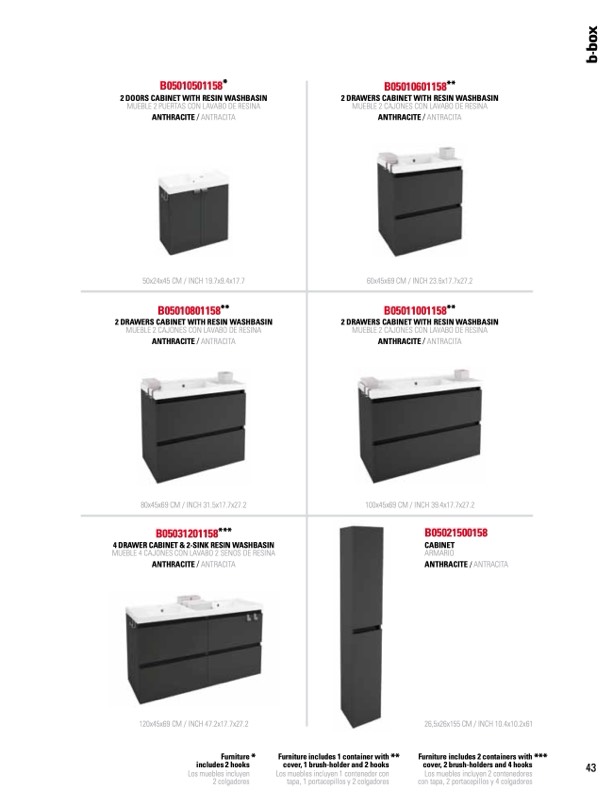 furniture includes 1 container with **
