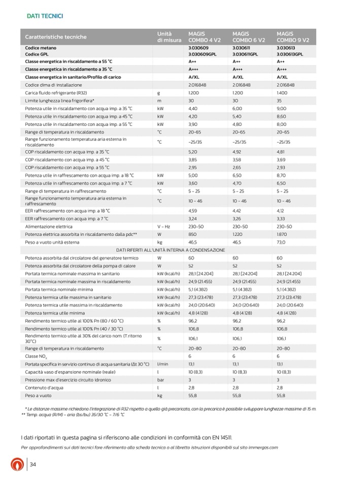 Per approfondimenti sui dati tecnici fare riferimento alla scheda tecnica o al libretto istruzioni disponibili sul sito immergas.com