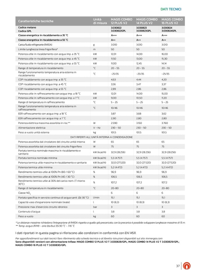 Per approfondimenti sui dati tecnici fare riferimento alla scheda tecnica o al libretto istruzioni disponibili sul sito immergas.com