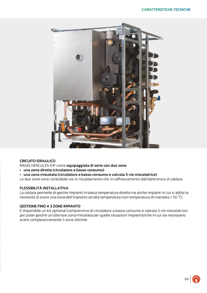 • una zona miscelata (circolatore a basso consumo e valvola 3 vie miscelatrice)