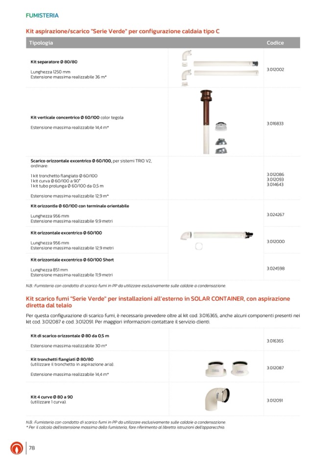 N.B.: Fumisteria con condotto di scarico fumi in PP da utilizzare esclusivamente sulle caldaie a condensazione.