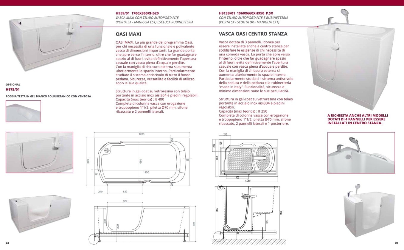 Vasca dotata di 3 pannelli, idonea per
