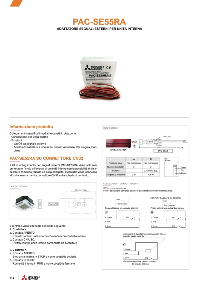 Il kit di collegamento per segnali esterni PAC-SE55RA viene utilizzato