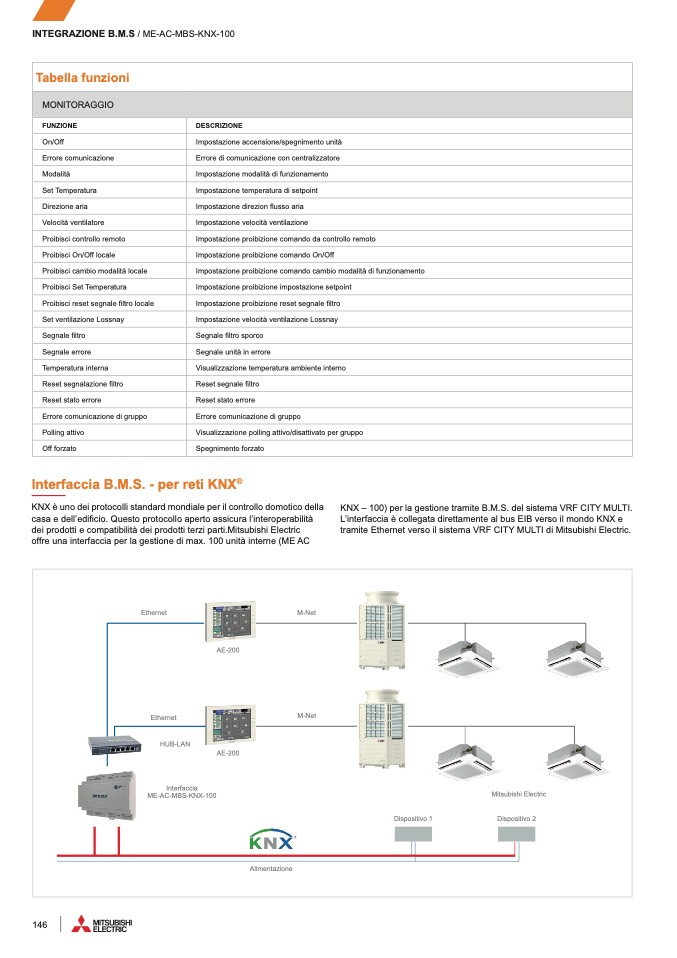 KNX – 100) per la gestione tramite B.M.S. del sistema VRF CITY MULTI.