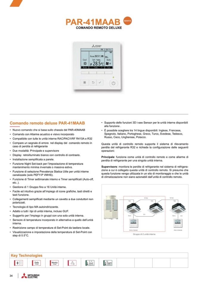 • Gestione di 1 Gruppo fino a 16 Unità interne.
