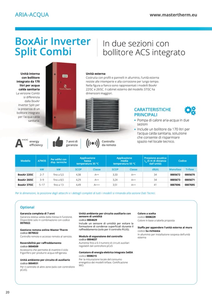 Per le dimensioni, la posizione degli attacchi e i dettagli completi di tutti i modelli si rimanda alla sezione Dati Tecnici.