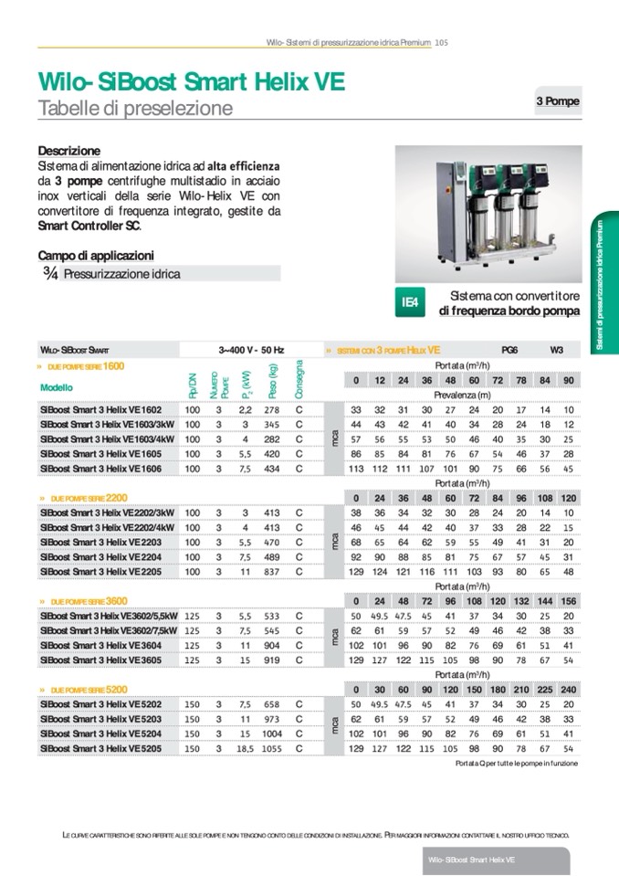 E CURVE CARATTERISTICHE SONO RIFERITE ALLE SOLE POMPE E NON TENGONO CONTO DELLE CONDIZIONI DI INSTALLAZIONE