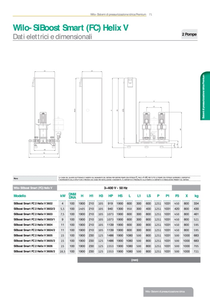LA CASSA DEL QUADRO ELETTRONICO È INSERITA SUL BASAMENTO DEL SISTEMA PER GESTIRE POMPE CON POTENZA P